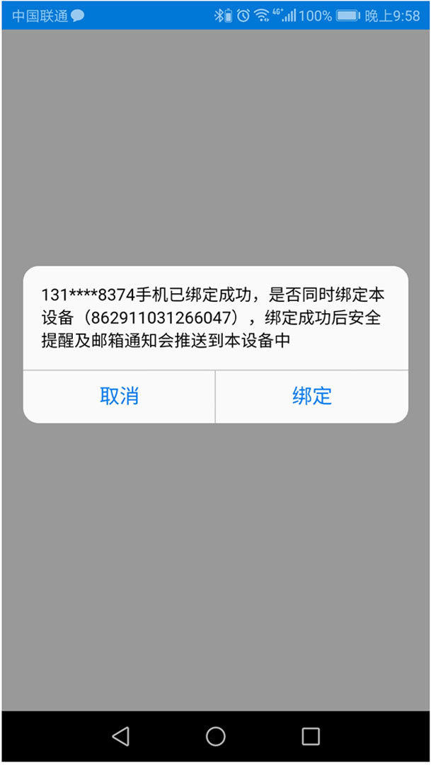 綁定流程:輸入用戶名密碼 -> 輸入手機號并獲取驗證碼 -> 綁定設備 -> 登錄郵箱