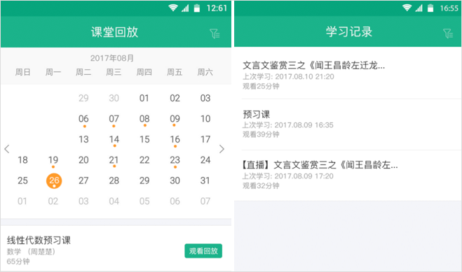 名師課堂:直播結合錄播,讓更多學生受惠;網絡自習室:老師直播答疑,助教配合播放錄播和插播視頻,提升自習效果;