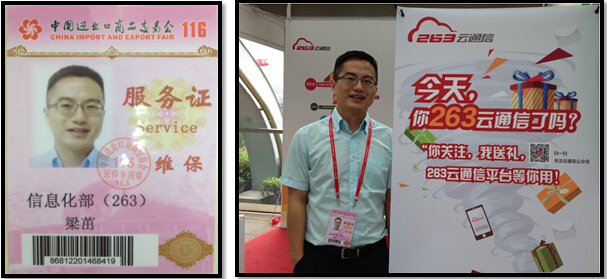 就在剛剛結束的第116屆中國進出口商品交易會即廣交會上,263企業通信展示了企業郵箱、云通信產品,吸引了行業及國內外采購商的關注、咨詢。不止于此,263企業通信作為本屆廣交會唯一指定企業通信服務提供商,派駐資深售后工程師梁茁為116屆廣交會展館提供263企業郵箱、云通信等服務,身肩重任,全程維護現場可能出現的郵箱故障,保障整個展會期間的企業通信順暢,足以看出廣交會主辦方對263產品及服務的認可。