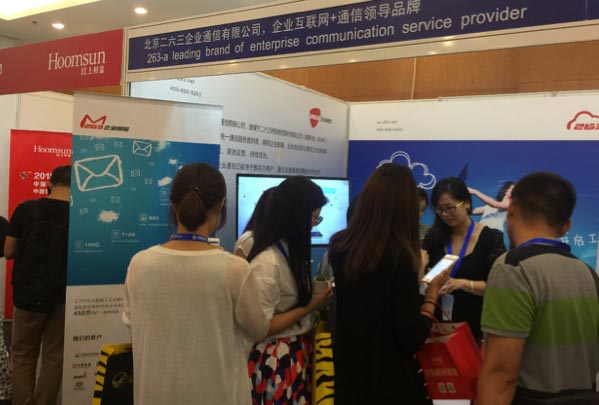 為了更好的參加此次中國互聯網大會,向社會展示企業統一通信及高效企業管理的創新服務,北京二六三企業通信可謂是下足了功夫。大會現場企業工作人員通過視頻海報展示、人員解說和實際操作等形式,整體展示了二六三企業通信三大產品業務:263云通信、263企業郵箱、263企業會議。吸引了大量參展/參觀人員前來駐足觀看詢問,其中還有不少企業表達了合作的意愿。