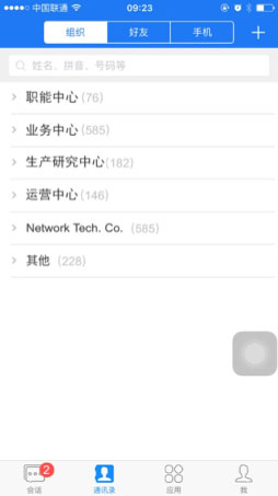 點開新版EM,企業通訊錄隨手可得,企業組織架構一目了然,讓員工更快融入集體、掌握工作,無論在何時何地都能及時和同事實現無障礙溝通。