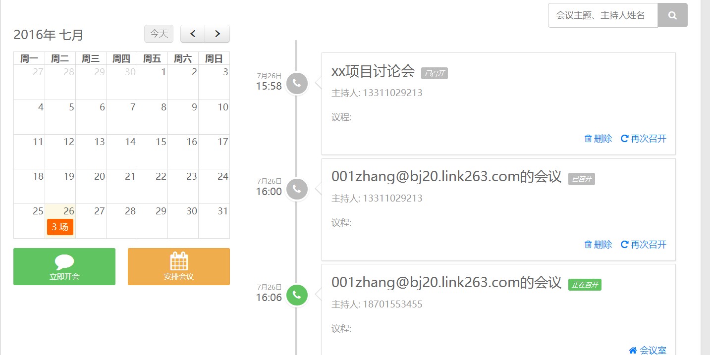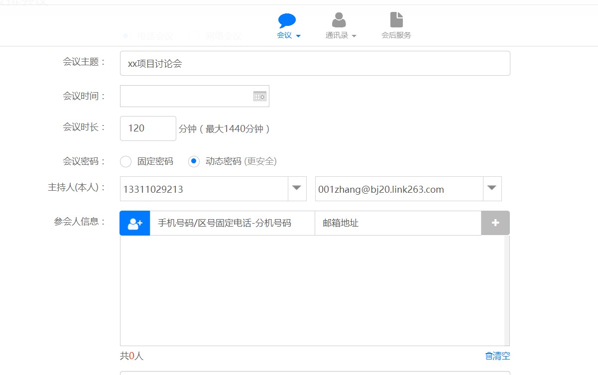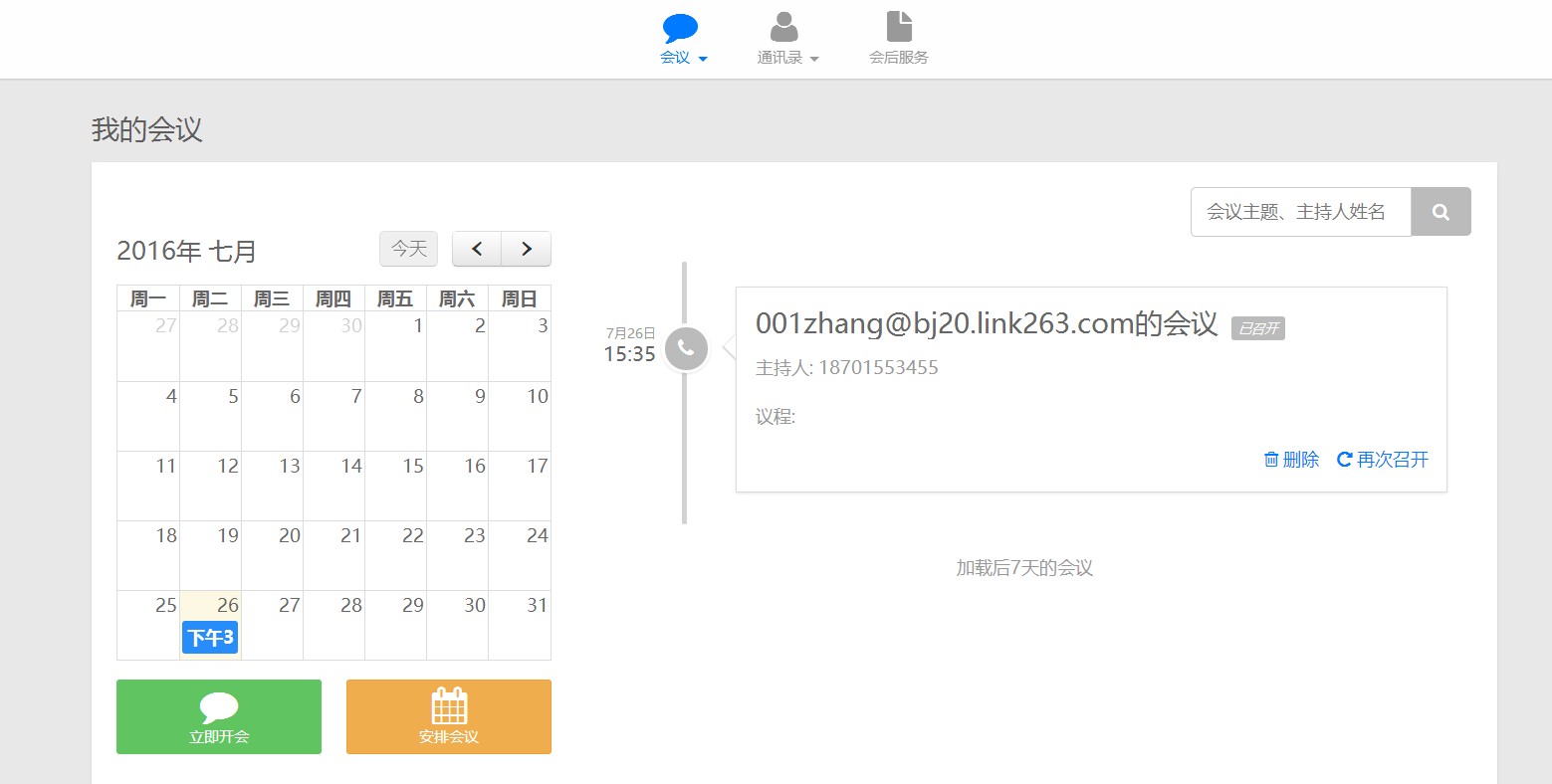 263電話會議可以進行會議監控,登陸后可以立即開會,也可以預約開會。