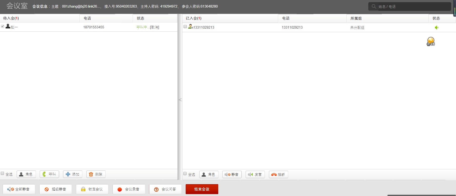 在會議過程中的體驗尤其令小編感到周到,會議開始前可以設置暖場音樂,讓提前進來的參會人先舒緩一下心情;會議正式開始以后可以鎖定會議室,遲到進來的人或者沒有經過邀請進來的人需要經過會議發起人同意才能進入會議,避免會議混亂;會議發起人還可以在會議中隨時添加、呼叫、刪除參會人員,會議過程中可以進行會議問答,可設置不同人員發言和禁言模式,方便會議管理。會議還可以進行錄音,便于會議記錄。會議監控者有任何操作參會人員均可收到語音提示,這一點非常的人性化!