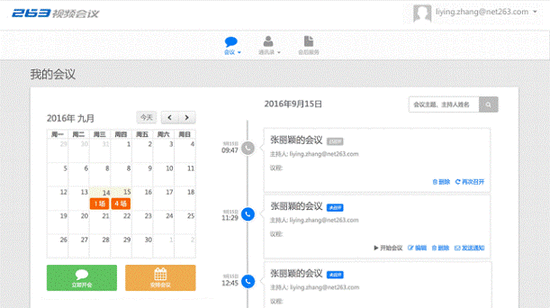 263視頻會議的使用也很便捷,可以提前安排會議并邀請參會者,又支持立即開會。