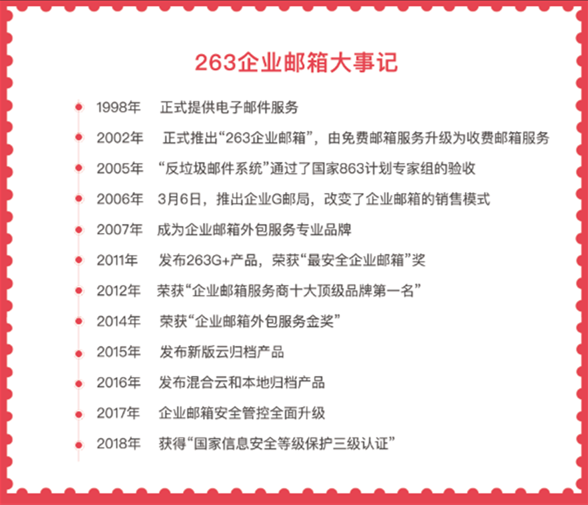今年,正值新中國成立70周年,也是263企業郵箱誕生的第21年。在互聯網通信領域,從電子郵件時代,到即時通訊時代,再到如今的視頻通信時代,263企業郵箱有幸見證了我國互聯網的飛速發展。