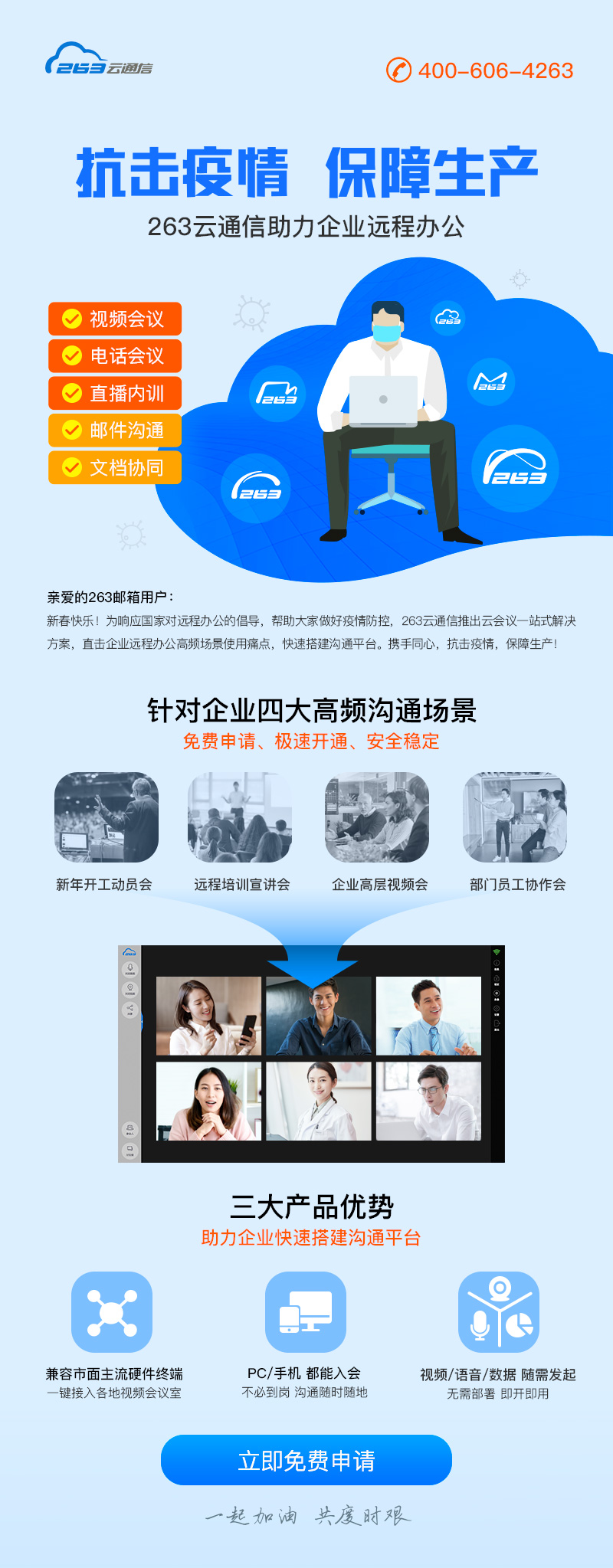 為遠程辦公助力!263云通信與企業用戶共同戰疫!