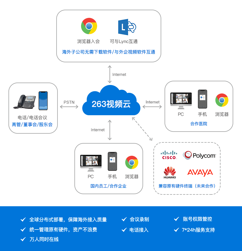重點1:云視頻平臺與公司原有會議設備完美兼容