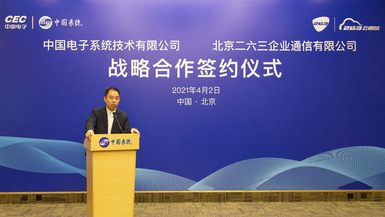 2021年4月2日,中國電子系統技術有限公司(簡稱“中國系統”)與北京二六三企業通信有限公司(簡稱“263企業通信”)簽署戰略合作協議,雙方將依托各自優勢資源,在SaaS級企業通信互聯網產品領域展開全面深入合作。