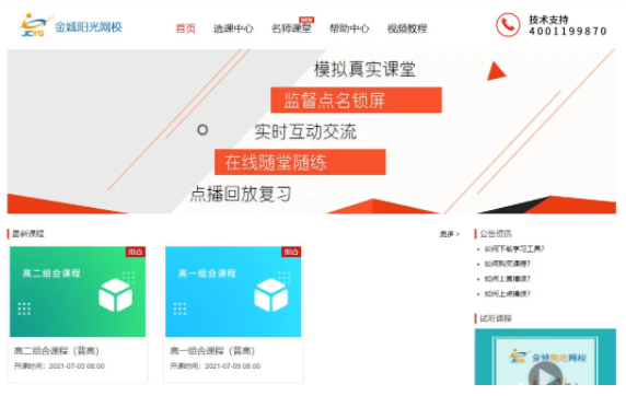 金城陽光網校還支持課程的錄制和點播課件,幫助學生回顧復習,溫故知新。除此之外,通過263開放API、SDK等各類豐富接口,金城陽光網校實現了登錄界面定制、平臺融合等各類特定需求,為網校品牌傳播提供了有利幫助。