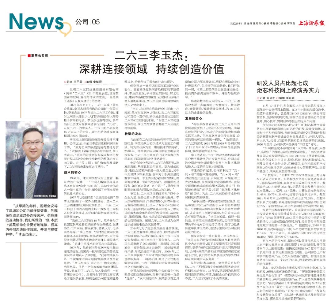 李玉杰上任后的首份財務報告并不理想。公司2021年前三季度營收和利潤均有下降。“我對公司的長期發展有著絕對信心。”在接受上海證券報記者專訪時,李玉杰表示,“公司的業績增長與我國數字化發展進程,以及企業數字化轉型的整體進度正向關聯。在‘云+網+端’整體發展戰略下,二六三的未來發展大可期待。”