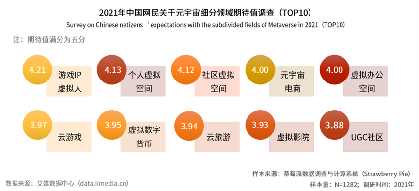 國內用戶也對元宇宙的應用落地充滿期待,據調查數據顯示,虛擬場景和虛擬人因已擁有多種落地應用,較早進入大眾視線也收獲了更高的期待值。除此之外,用戶已開始對虛擬辦公空間、元宇宙電商這類企業元宇宙領域同樣抱有較高期待和使用意愿。