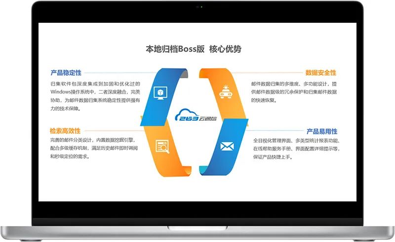多年來,263已為大量外貿企業提供企業郵箱服務,深知外貿企業的管理痛點和需求,因此將標準版歸檔產品進行了功能升級,推出面向外貿行業的專屬升級版產品;263本地歸檔Boss版與以往的歸檔產品不同,不再局限于263企業郵箱客戶使用,也不限制郵件發送平臺,任何客戶端收發的郵件和附件均可以歸檔至本地,實時查看、搜索、永久留存。