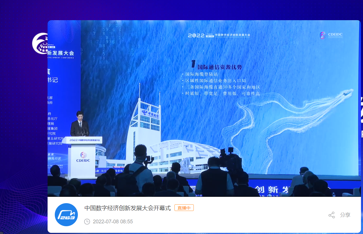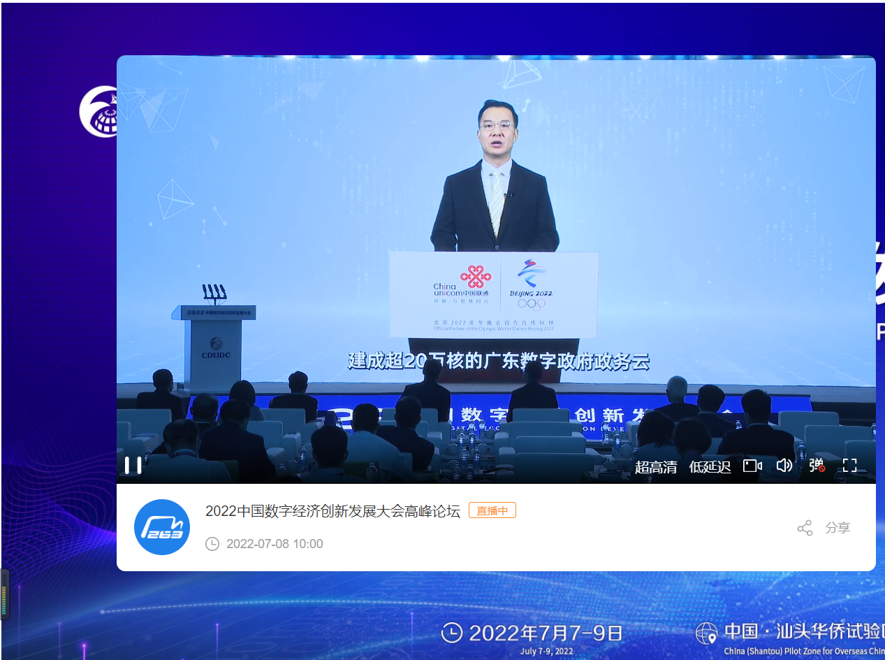 近日,由工業和信息化部、廣東省人民政府聯合主辦的“2022中國數字經濟創新發展大會”在廣東省汕頭市圓滿閉幕。本次大會以“聚數聯僑 共創未來--打造數字經濟國際合作先行區”為主題,聚力打造我國數字經濟國際合作創新發展的重要窗口和數字經濟對外開放服務華僑的國家級平臺。263為本次活動提供了穩定、高清、無延遲的直播支持,讓本次論壇在全球范圍內得以高品質傳播。