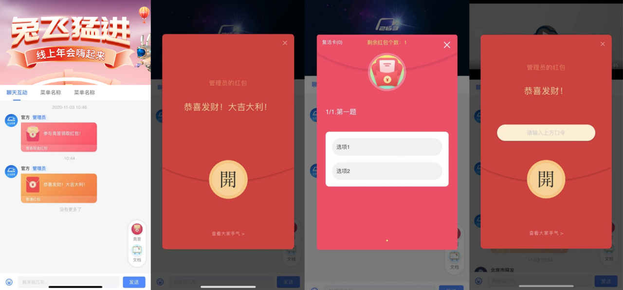 當然年會最令人期待的環節,必然是紅包和抽獎環節,263多種紅包形式可被一一被搬進年會中,給員工帶去新的參與感。