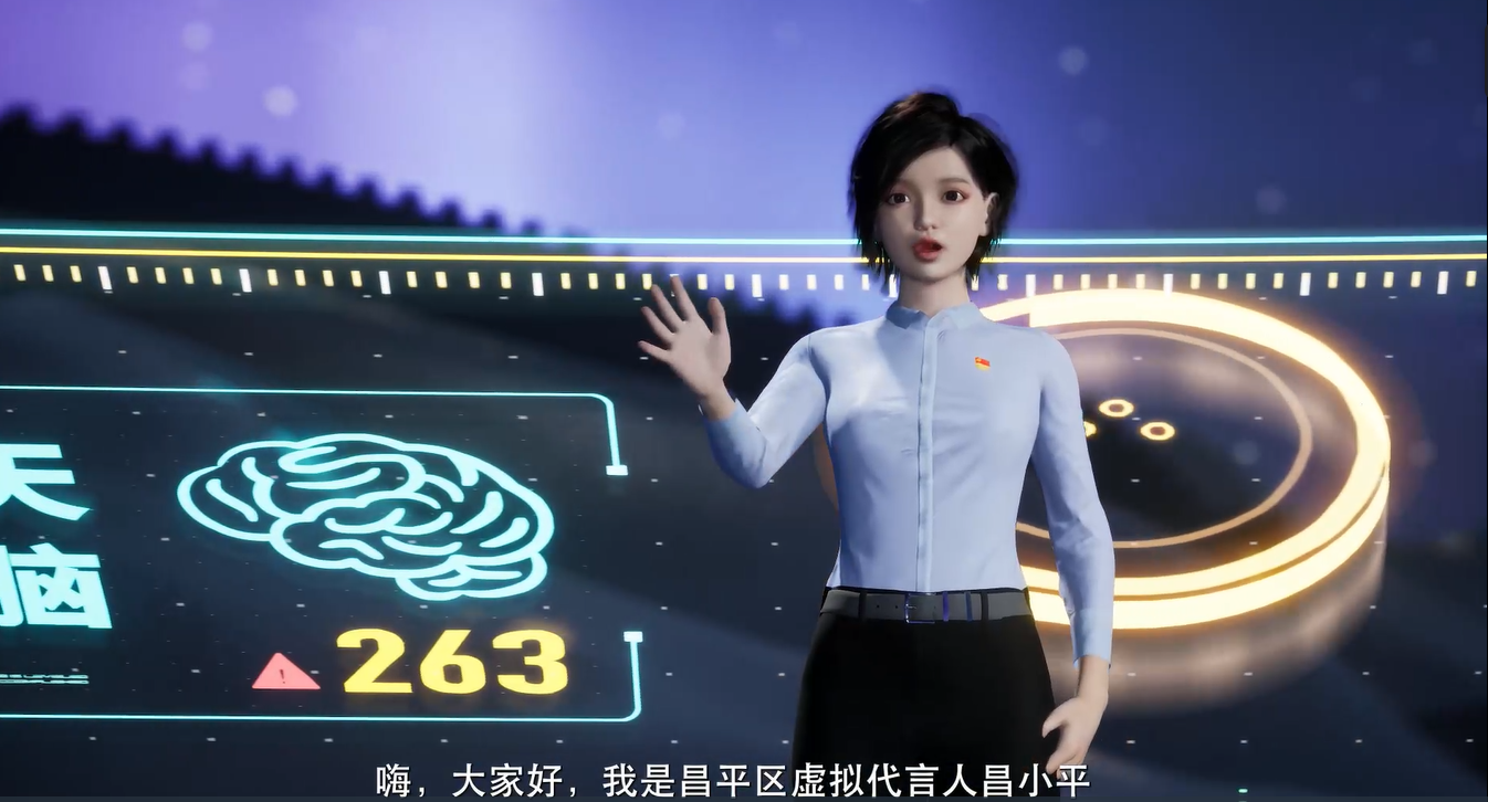263在數字人方面聚焦在打造服務型AI數字人。今年8月,263與北京市昌平區經信局攜手打造的昌平區虛擬代言人“昌小平”順利落地,并依從應用場景的不同需求,讓“昌小平”逐步完成了從建模到驅動再到AI賦智的迭代,從形象建模、肢體動作、交互能力、語義理解各方面,都能更好地適配場景,提供智能與情感兼備的專業服務。