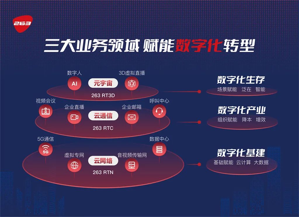2022年,263便持續探索企業元宇宙,聚焦服務型AI數字人和3D虛擬直播,并切實地推動263企業元宇宙從技術層面走進應用場景,持續為客戶創造價值,并搶占了市場先機。面向未來,263將繼續發揮元宇宙技術優勢,融合5G、VR、AI、大數據等前沿科技,為數字化場景創新增添新的活力。