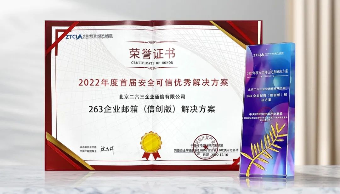 在國家“科技自立自強”“關鍵核心技術新型舉國體制”的正確指引下,作為數字化轉型的賦能者,263是業內率先布局國產信創、可信計算3.0領域的企業之一,已推出多款場景化信創郵箱產品,曾榮獲“2021年度信創優秀企業”、并在2021年和2022年連續兩年獲評“年度信創云Top50”。