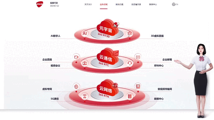 云網絡業務,這不僅是263的本行,也是263在未來互聯網產業鏈中的新起點,包括數據中心、虛擬專網,音視頻傳輸網RTN和5G通信,打造云基礎設施的數據連接力,同時為263元宇宙業務提供算力支撐。
