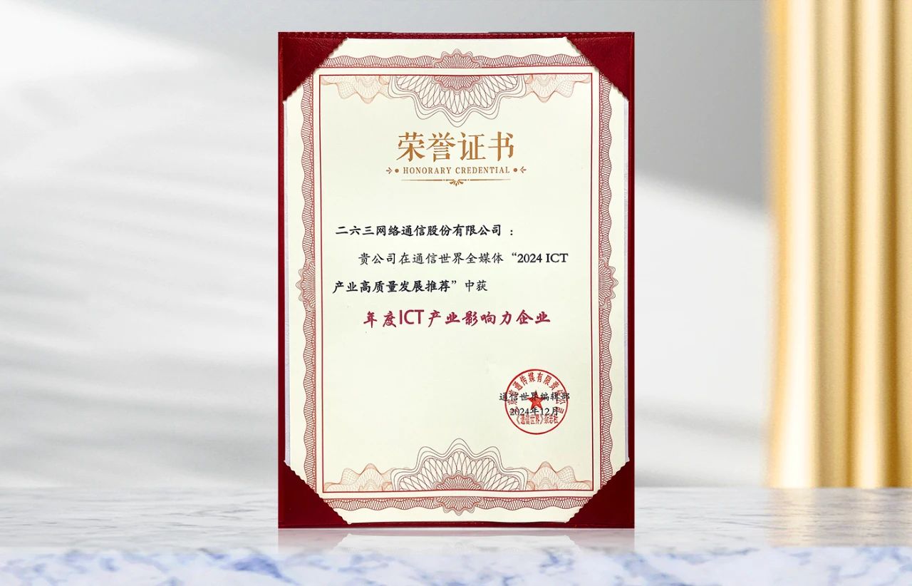 263集團憑借在ICT領域的持續深耕以及在數字化服務方面的成果,經權威ICT行業媒體,通信世界全媒體推薦和專家評審的層層梳理,入選2024 ICT產業高質量發展推薦名單,并榮獲“年度ICT產業影響力企業”稱號。此次獲獎,既是ICT產業對263持續深耕互聯網通信領域的大力認可,也意味著263在過去一年中的諸多數字化服務成果贏得了行業及市場肯定。