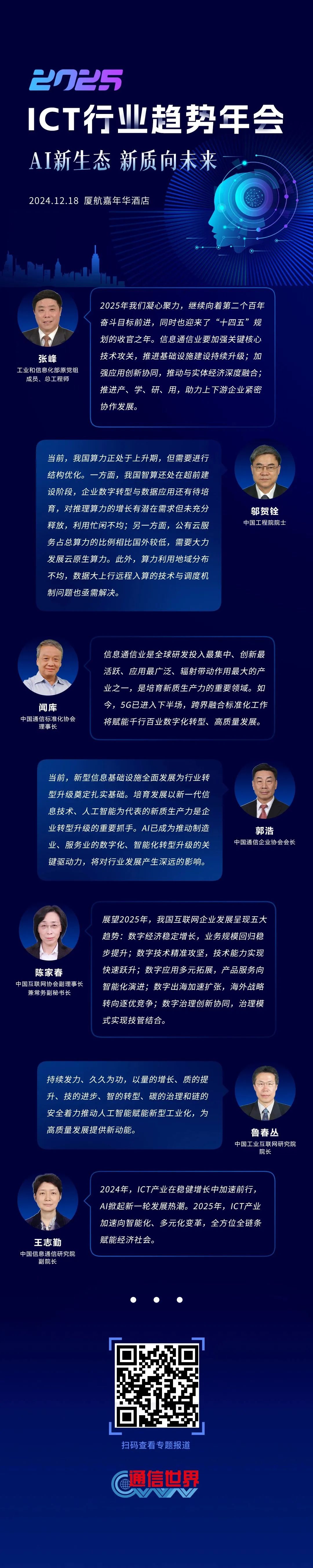 12月18日,備受矚目的“2025 ICT行業趨勢年會”在北京隆重舉行。本次年會由通信世界全媒體主辦,以“AI新生態 新質向未來”為主題,匯聚了來自政府、研究院、運營商及產業鏈上的40余位頂尖專家和行業領袖,共同探討ICT行業的最新趨勢和未來發展方向。
