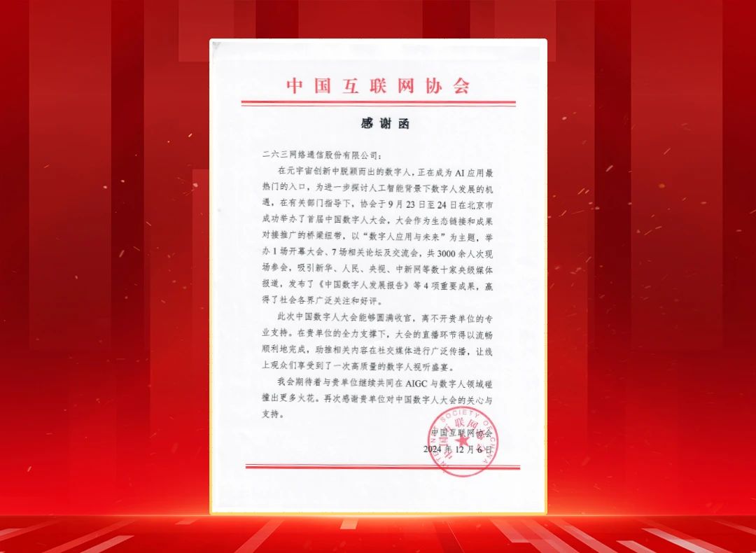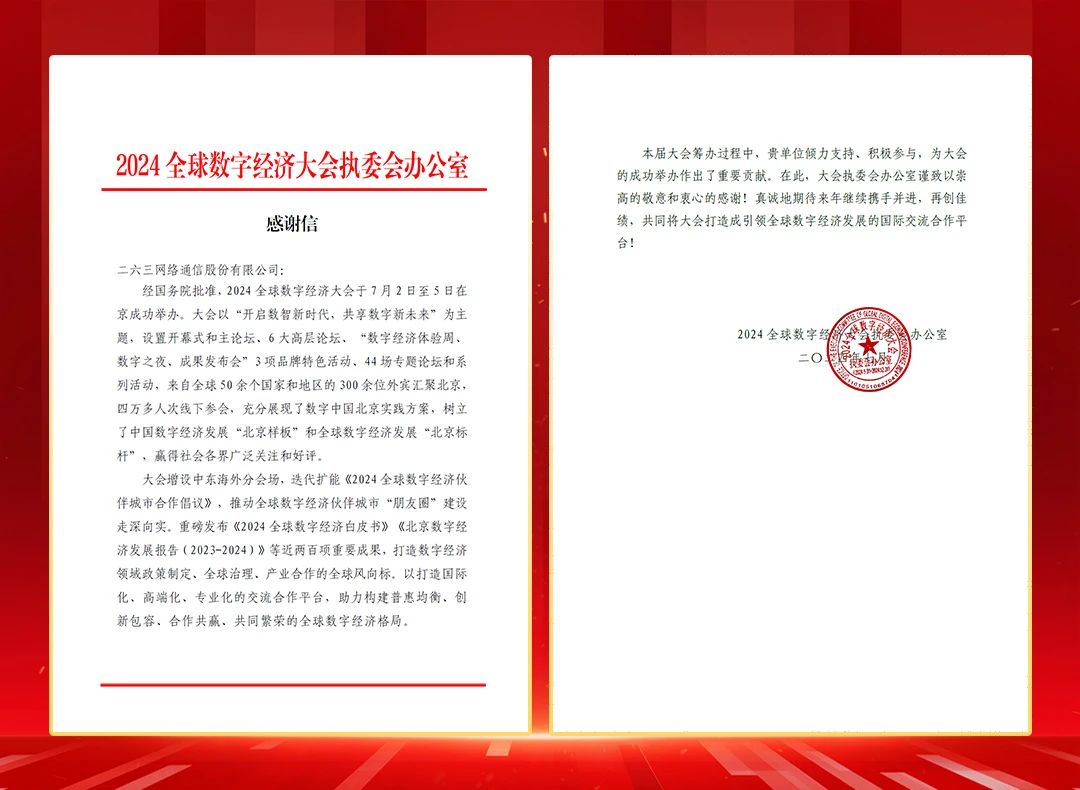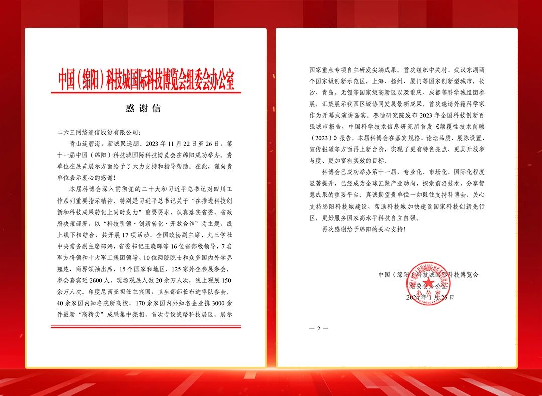 這一年,263集團在互聯網通信服務領域穩步前行,致力于為客戶持續創造新價值,并憑借卓越的技術實力與專業用心的服務,收獲了眾多客戶的高度認可與廣泛贊譽。這些認可與贊譽化作一封封“沉甸甸”的感謝信,成為263集團堅定探索的力量。
