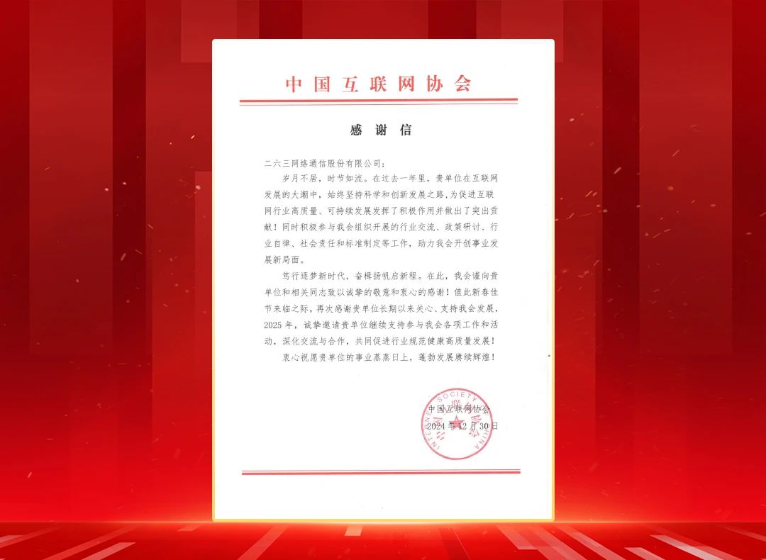 “在過去一年里,263始終堅持科學和創新發展之路,為促進互聯網行業高質量、可持續發展發揮了積極作用并做出了突出貢獻!同時積極參與我會組織開展的行業交流、政策研討、行業自律、社會責任和標準制定等工作,助力中國互聯網協會開創事業發展新局面!”