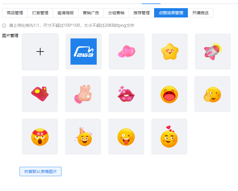 云播上線自定義點贊表情,比起簡簡單單的系統自帶表情,企業可根據具體直播活動,替換、新增新的點贊表情,為活動增加更多活力與色彩。
