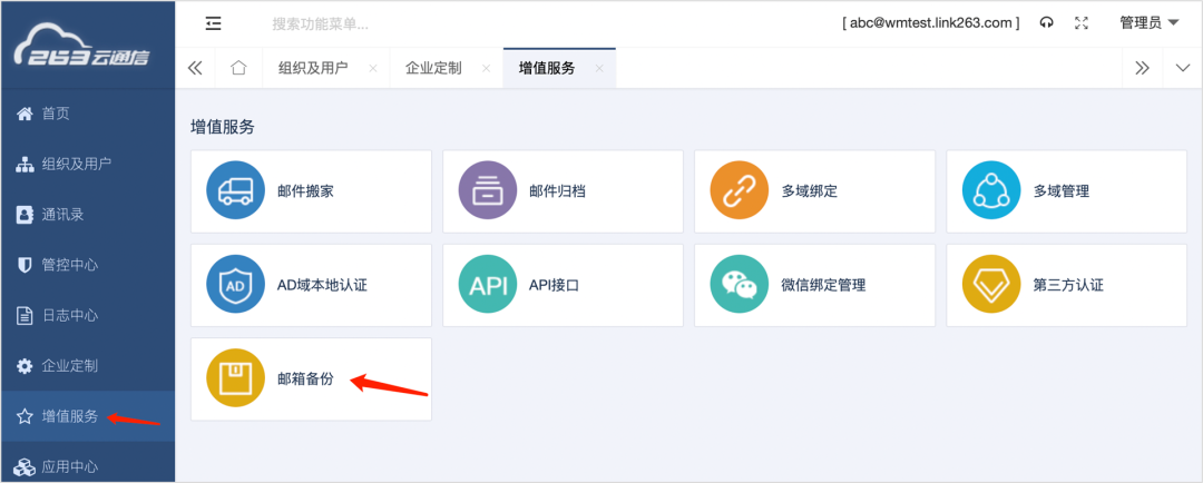 郵箱承載了企業商業機密、員工個人信息等重要數據,郵箱來往郵件信息,是企業重要的數據資產之一。263郵箱專家建議企業郵箱管理員善用263企業郵箱的郵箱備份功能,備份所有離職員工的來郵件和通訊錄,其中核心人員的郵件尤其要做好備份,以便將所有的業務相關信息完整保留和延續下來。
