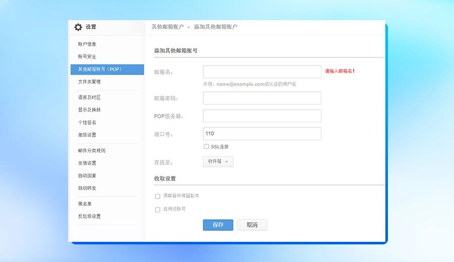 263企業郵箱提供了代收其他郵箱郵件的功能,只需將其他郵箱的賬號和密碼等信息在后臺根據要求填寫,就可以在企業郵箱里收取、管理其他郵箱的郵件。