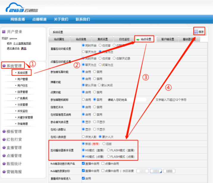 嵌入方式不變,修改對應263企業直播后臺設置即可;