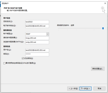 請填寫IMAP地址(點此查詢客戶端配置地址)