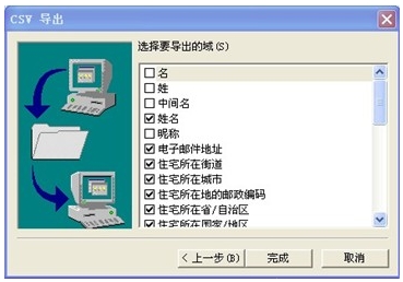 在導出通訊簿時注意選擇映射關系,導出為csv格式,選擇需要的字段。