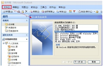 請您點擊office outlook上的“文件-導入和導出-導出到文件”,如下圖: