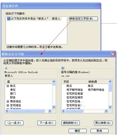 在導出通訊簿時注意選擇映射關系,導出為csv格式,選擇需要的字段,如下: