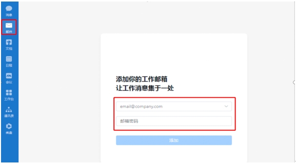 1. 管理員打開電腦端企業微信->郵件,輸入郵箱賬號密碼;