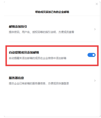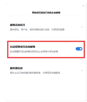 9. 點擊自動提醒添加成員郵箱,員工企業微信會收到添加郵箱的提醒。