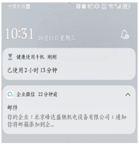12. 提醒成員添加郵箱的內容如下,測試的時候手機端企業微信收到提醒,pc端沒有收到,提示不是實時的,會有延時。