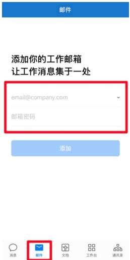 1. 管理員打開手機端企業微信->郵件,輸入郵箱賬號密碼。