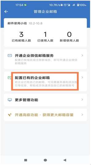 騰訊企業微信對接第三方企業郵箱有變更,可以實現管理員配置郵箱賬號和服務器地址后,員工直接在企業微信上輸入用戶名和密碼登錄,不需要再輸入服務器地址,操作步驟如下。