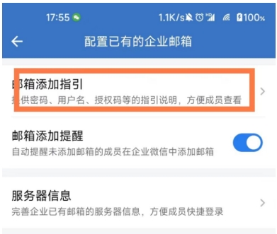 成員在添加過程種可能遇到需要提供郵箱協議、服務器、用戶名等信息的情況,管理員可根據企業實際補充指引