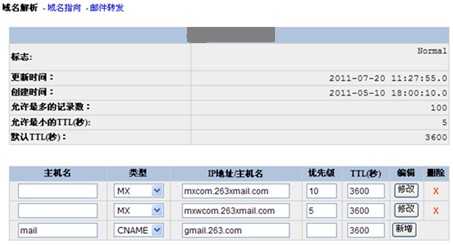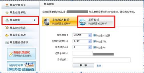 3. 35互聯域名將解析指向263企業郵局的方法: