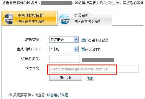 (4)如果您需要添加TXT記錄,可以按以下圖式添加。