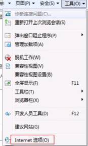 (1)請點擊瀏覽器的“工具”菜單,選擇“Internet選項”