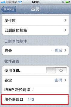 IMAP默認端口號為:143 (IMAP目前還不支持ssl加密方式)