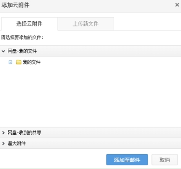 1) 在寫信頁面,點擊“云附件”鏈接,彈出如下頁面。