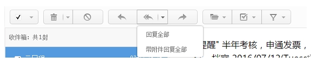 3) 帶附件回復全部:選擇一封郵件,選擇“回復全部”選項下的“帶附件回復全部”按鈕,可以將原郵件的附件添加至新的郵件中進行回復。