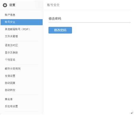 點擊右上角頭像打開菜單,然后點擊“設置”進入郵箱設置頁面,選擇“賬號安全”標簽進入設置: