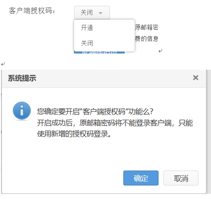 客戶可根據自己實際使用情況,選擇是否開啟客戶端授權碼,開啟客戶端授權碼后,原郵箱密碼將不能登錄客戶端,只能使用新增的授權碼登錄,相當于網頁端是一個密碼,客戶端是另外一個復雜的密碼,即時用戶的網頁密碼被知道,也無法使用客戶端的收發郵件。