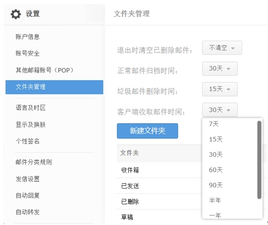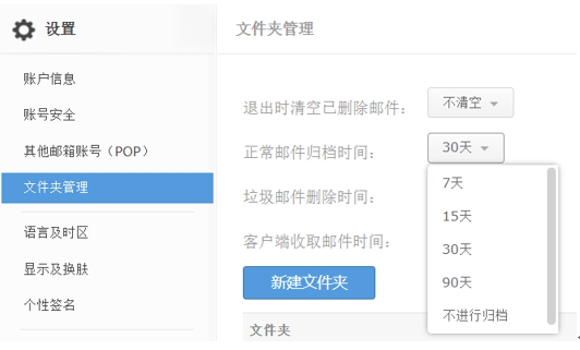 歸檔周期說明:可以選擇30天/15天/7天進行一次歸檔,歸檔后只保留近30天/15天/7天內的郵件。