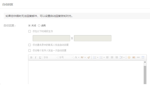 點擊右上角頭像打開菜單,然后點擊“設置”進入郵箱設置頁面,選擇“自動回復”標簽進入設置。